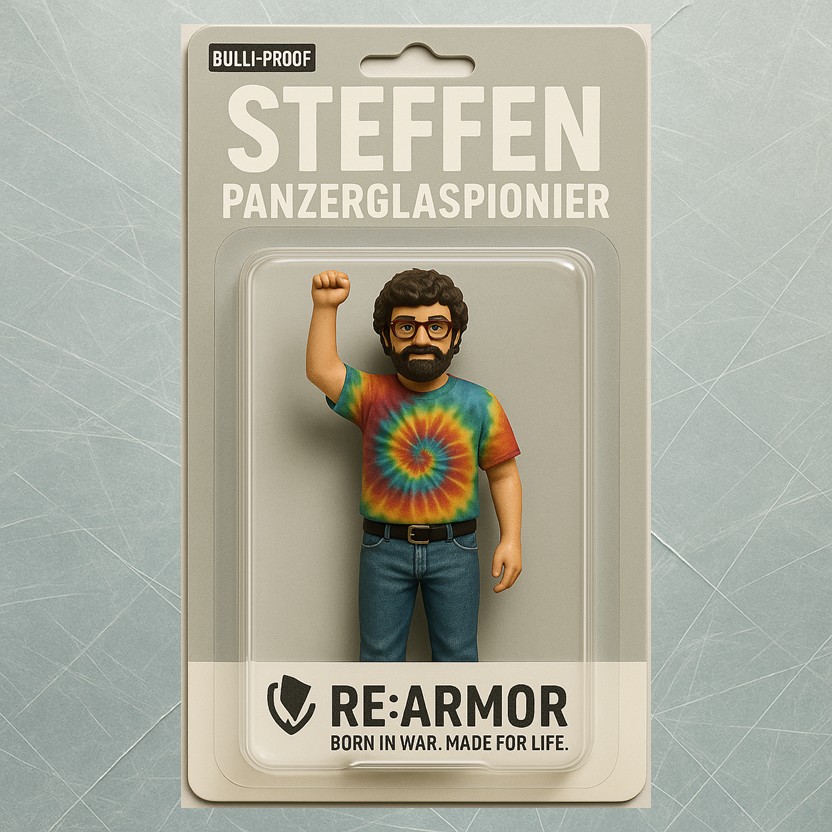 Während andere Start-ups in schicken Büros Strategien entwerfen, steigen wir in unseren alten VW-Bus und fahren los. Mehrmals im Monat geht’s für uns direkt in die Ukraine. Wir holen das Glas selbst – nicht über Zwischenhändler, nicht über Lieferketten. Einer schläft, der andere fährt. Stunde für Stunde, Kilometer für Kilometer. So holen wir jedes Stück Panzerglas persönlich zurück nach Deutschland.